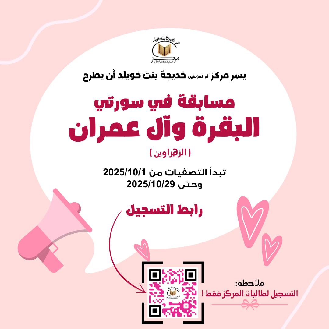 إعلان طرح مسابقة الزهراويين (سورتي البقرة و آل عمران)لدارسات المركز فقط
