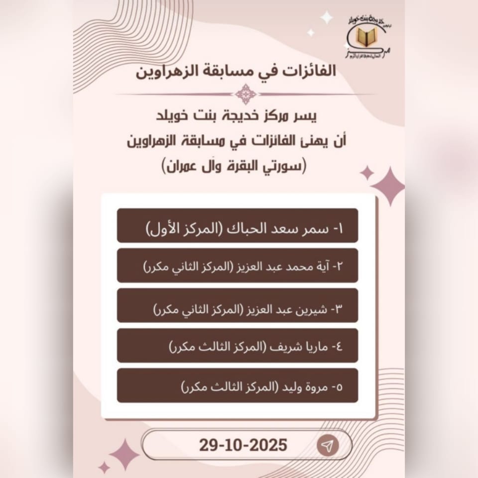 إعلان الفائزات في مسابقة سورتي البقرة و آل عمران(الزهراوين)