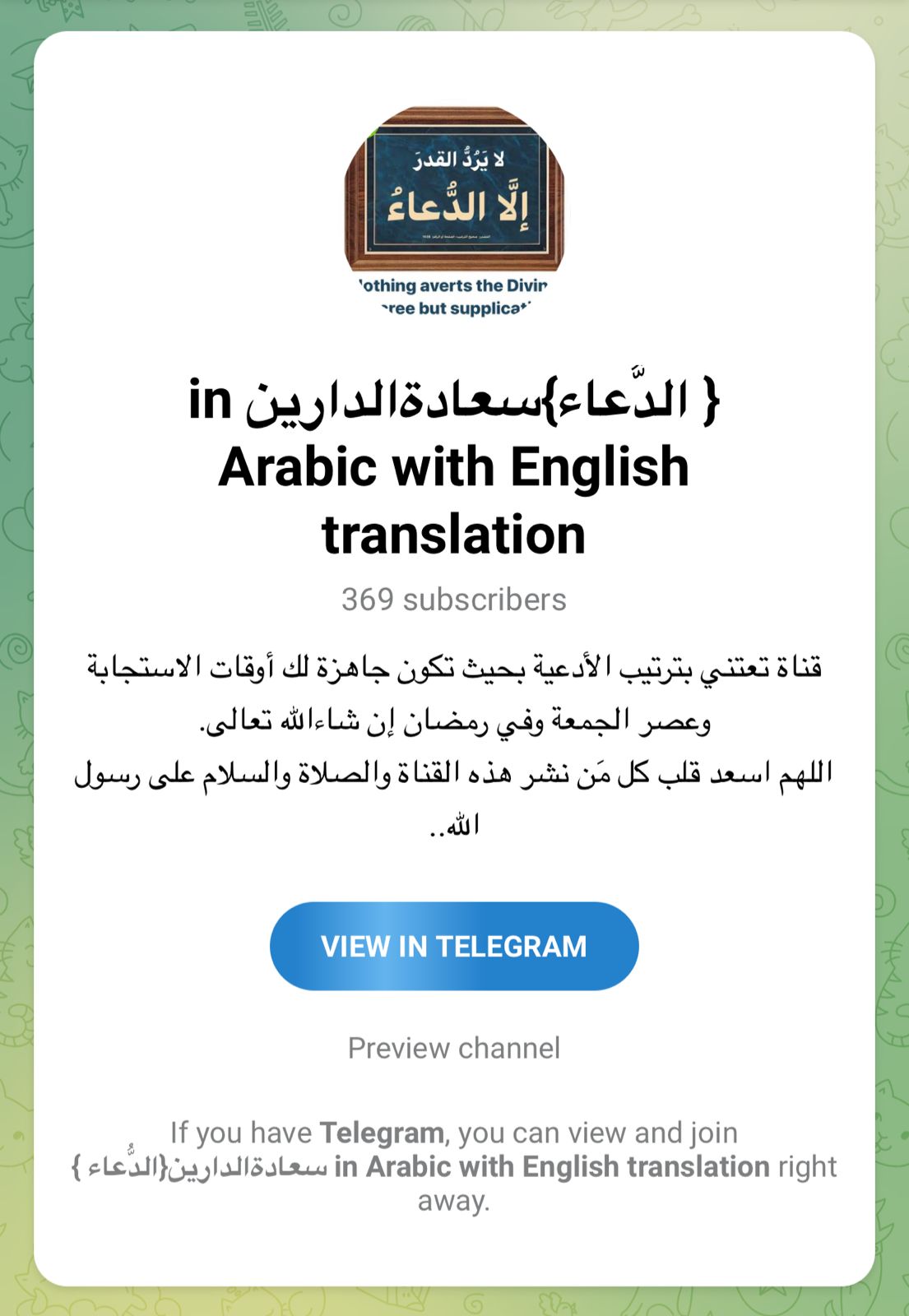 تابعوا معنا… قناة { الدُّعاء} سعادةالدارين in Arabic with English translation 01/11/2025 رابط القناة : https://t.me/joydoaa2023